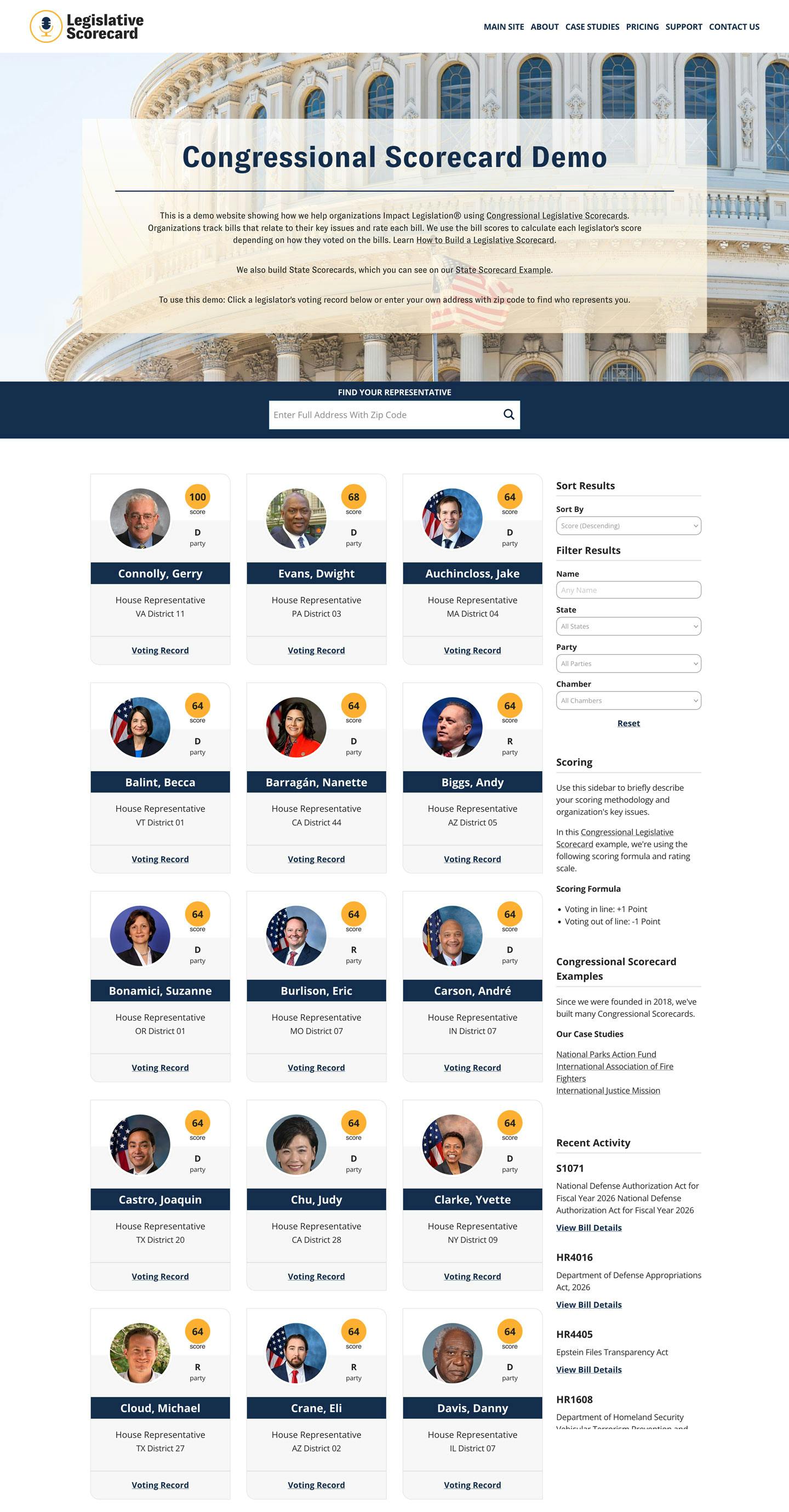 Each scorecard comes with a customizable landing page to help constituents find, compare, and understand legislative performance — without confusion.